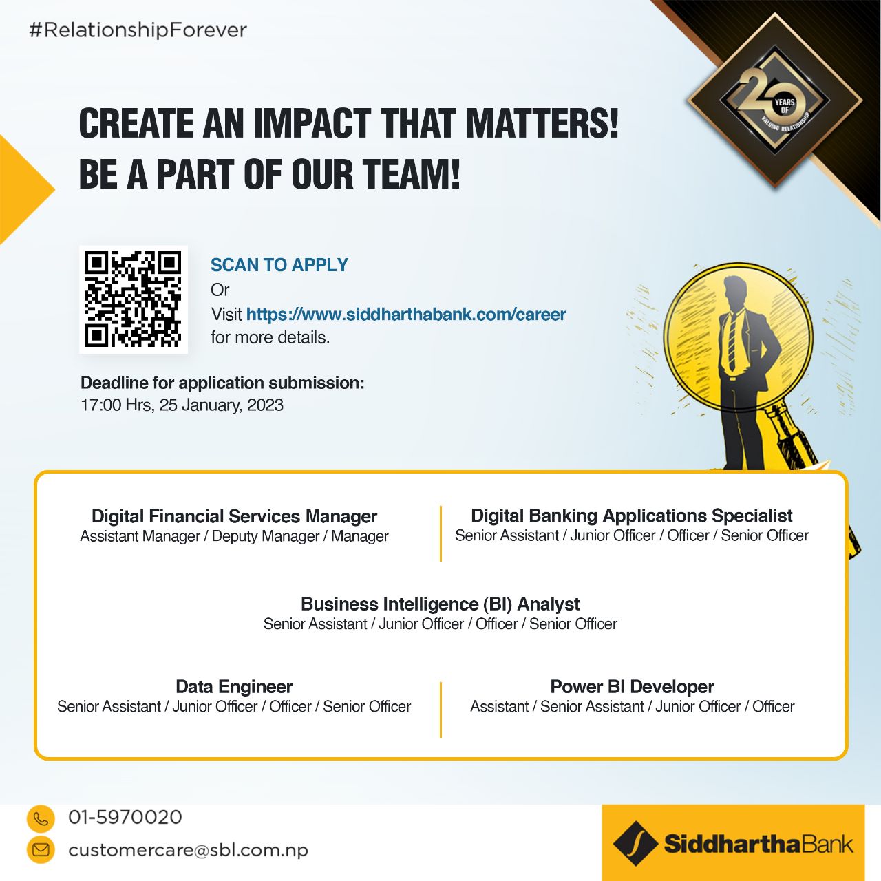 इच्छुक उम्मेदवारले बैंकको वेवासाईट  https://www.siddharthabank.com/    मार्फत आवेदन दिन सक्नेछन् ।