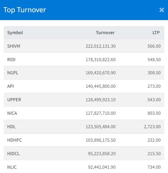 त्यस्तै, रिडी हाइड्रोपावरको १७ करोड ८३ लाख, ङादी ग्रुप पावरको १६ करोड ९४ लाख, अपि पावरको १४ करोड ४ लाख र अपर तामाकोशीको १२ करोड ८४ लाख रुपैयाँमाथिको कारोबार भएको छ ।