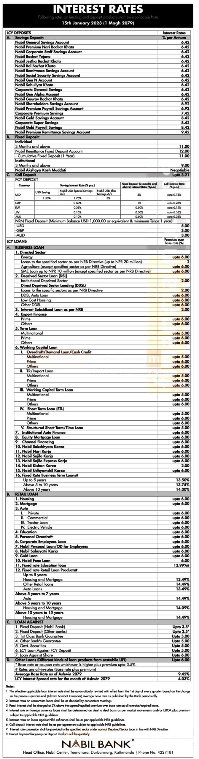 सार्वजनिक ब्याजदर अनुसार बैंकले साधारण बचत खातामा न्यूनतम ६.४२ प्रतिशतदेखि अधिकतम ९.४२ प्रतिशतसम्म ब्याजदर निर्धारण गरेकोछ । यसअघि बैंकले यस्तो खातामा न्यूनतम ७.१३ प्रतिशत र अधिकतम १०.१३ प्रतिशतसम्म ब्याजदर निर्धारण गरेको थियो ।