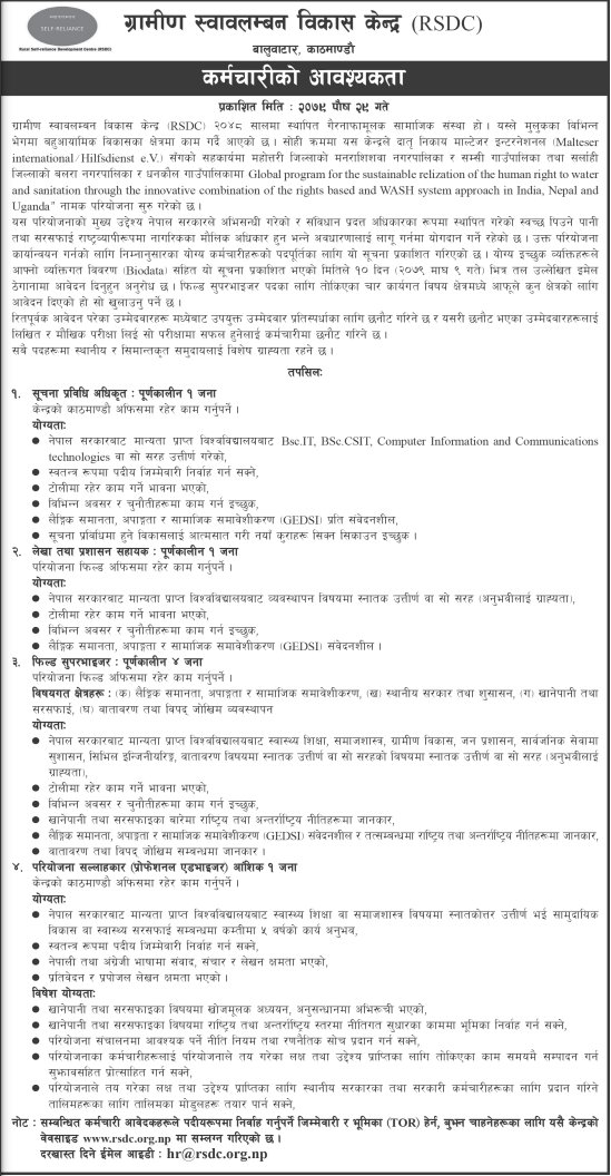 ग्रामिण स्वावलम्वन विकासद्धारा कर्मचारी माग, कति चाहिन्छ शैक्षिक यौग्यता कति ?