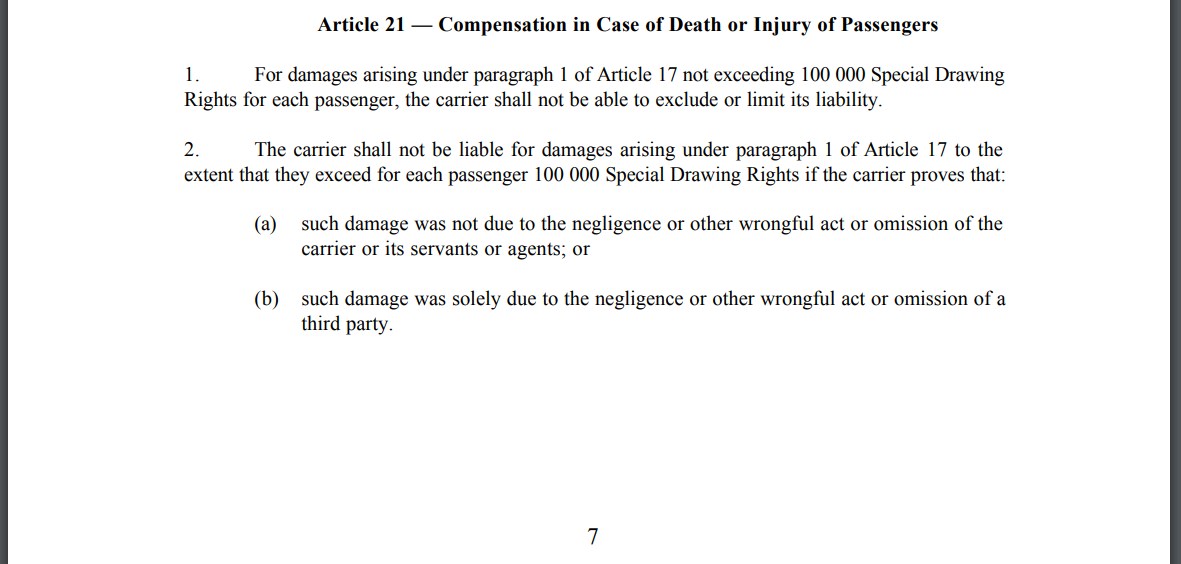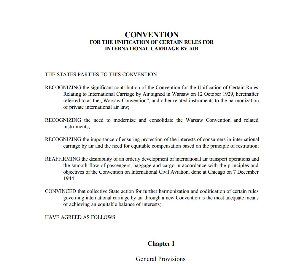 हालै पोखरामा दुर्घटनाग्रस्त बनेको यति एयरलाइन्सको जहाजमा ६८ जना यात्रु र चार जना क्रु मेम्वरको दुःखद निधन भयो । सो घटनाको सम्बन्धमा बीमा गर्ने कम्पनी हिमालयन एभरेष्ट इन्स्योरेन्स कम्पनीबाट हुने दावी भुक्तानी गैर कानुनी मात्रै नभई करिब १०० वर्ष पुरानो अन्तर्राष्ट्रिय अन्तर्राष्ट्रिय नियम अनुसार हुने गरेको छ । सन् १९२९ अक्टोवर १२ मा जारी वार्षा महासन्धीलाई प्रतिस्थापन गर्ने गरी सन् १९९९ मा द मोन्ट्रियल महासन्धी जारी भइसकेको छ ।