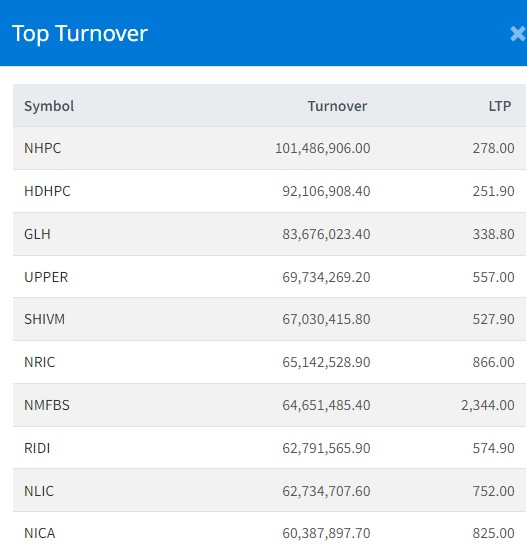 हाइड्रोपावर कम्पनीमा झुम्मिए लगानीकर्ता, यी बुधबार आज सर्वाधिक कारोबार हुने टप १० कम्पनी