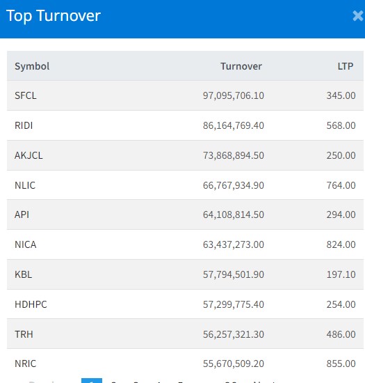 त्यस्तै, रिडी हाइड्रोपावरको ८ करोड ६१ लाख, आँखुखोला जलविद्युतको ७ करोड ३८ लाख, नेपाल लाइफ इन्स्योरेन्सको ६ करोड ६७ लाख र अपि पावरको ६ करोड ४१ लाख रुपैयाँमाथिको कारोबा भएको छ ।