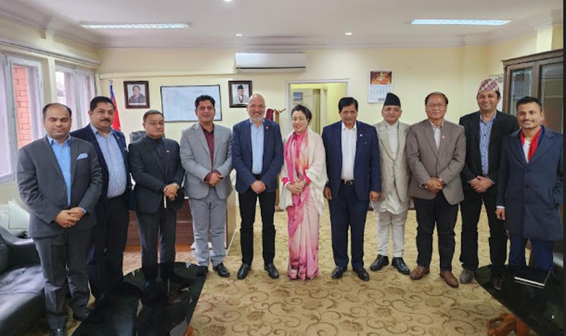 काठमाडौं । नेपाल उद्योग वाणिज्य महासंघको प्रतिनिधिमण्डलले माननीय उद्योग, वाणिज्य तथा आपूर्ति मन्त्री दामोदर भण्डारी समक्ष सिंहदरवारमा भेटगरी उद्योग व्यवसाय प्रवद्र्धनका बिषयमा छलफल गरेको छ ।