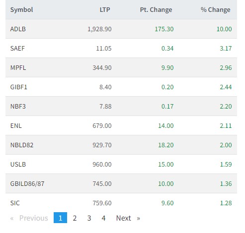 त्यस्तै, सानिमा इक्विटी फण्ड, मल्टिप्रपोज फाइनान्स, ग्लोबल आइएमई ब्याले्रन्स फण्ड १, नबिल ब्यालेनस फण्ड ३, इमजिङ नेपाल, नबिल बैंकको डिभेञ्चर ८२, उन्नती सहकार्य लघुवित्त, ग्लोबल आइएमइए बैंकको डिभेञ्चर ८६र८७ र सगरमाथा इन्स्योरेन्सको शेयर उकालो लागेको छ ।