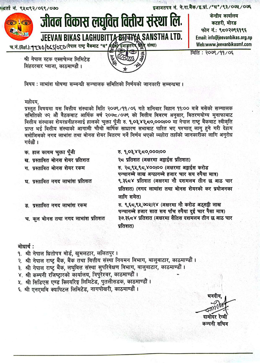 जीवन विकास लघुवित्तको लाभांश घोषणा, बोनस र नगद कति ?