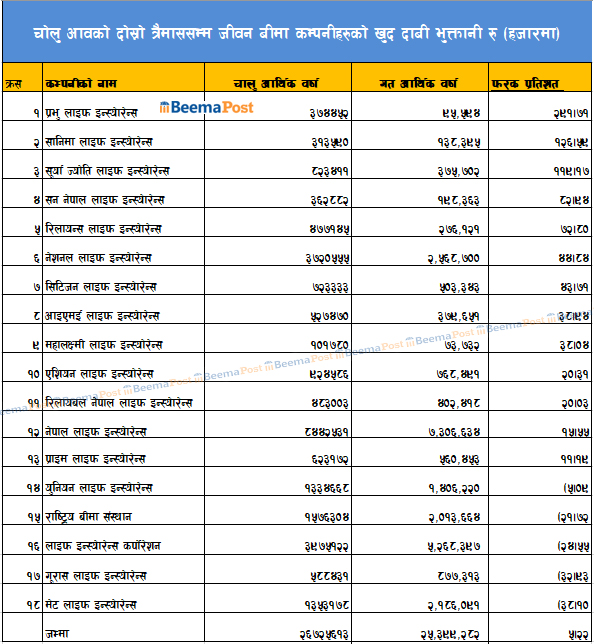 सन नेपाल लाइफ, रिलायबल नेपाल लाइफ, नेशनल लाइफ, सिटिजन लाइफ, आइएमई लाइफ, महालक्ष्मी लाइफ, एशियन लाइफ, रिलायन्स लाइफ लगायतका कम्पनीको दाबी भुक्तानी बढेको छ ।