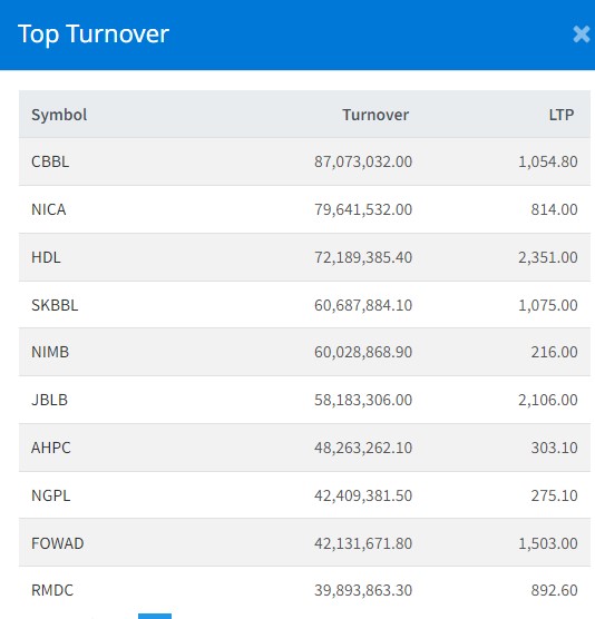 त्यस्तै, एनआइसी एशिया बैंकको ७ करोड ९६ लाख, हिमालयन डिष्टिलरीको ७ करोड २१ लाख, साना किसान विकास लघुवित्तको ६ करोड ६ लाख र नेपाल इन्भेष्टमेन्ट मेगा बैंकको ६ करोड रुपैयाँमाथिको कारोबार भएको छ।