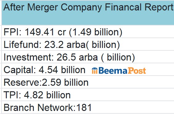 बीमापोष्टलाई कम्पनीबाट प्राप्त एकीकृत वित्तिय विवरण अनुसार कम्पनीले मर्जरपश्चात् वित्तिय विवरणमा प्रगति गर्न सफल भएको छ ।मर्जरपश्चात् १८१ वटा शाखा कार्यालयबाट सेवा प्रदान गर्दै आएको कम्पनीको बीमा कोषमा २३ अर्ब २ करोड रुपैयाँ रकम संचिति रहेको छ ।
