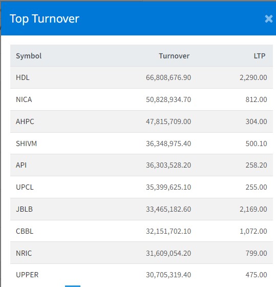 त्यस्तै, एनआइसी एशिया बैंकको ५ करोड ८ लाख, अरुण भ्याली हाइड्रोपावरको ४ करोड ७८ लाख, शिवम् सिमेन्ट्सको ३ करोड ६३ लाख र अपि पावर कम्पनीको ३ करोड ६३ लाख रुपैयाँमाथिको कारोबार भएको छ ।