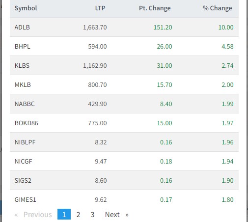 त्यस्तै, बराही हाईड्रोपावर, खप्तड लघुवित्त, मनकामना स्मार्ट लघुवित्त, नारायणी विकास बैंक, बिओके डिभेञ्चर ८६, एनआइबीएल प्रगति फण्ड, एनआईसी एशिया ग्रोथ फण्ड, सिद्धार्थ इन्भेष्टमेन्ट ग्रोथ फण्ड २, ग्लोबल आइएमई समुन्नत स्किम १ का शेयरधनीले आज कमाएका छन्।