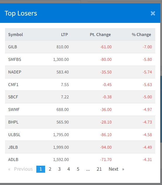 शेयर बजारमा गिरावट आएसँगै ग्लोबल आइएमई लघुवित्तको शेयर मुल्य सबैभन्दा बढी घटेको छ । त्यस्तै, स्वाभिमान लघुवित्त, नाडेप लघुवित्त, सिटिजन्स म्यचुअल फण्ड, सनराइज ब्ल्युचिप फण्ड लगायत अन्य कम्पनीको शेयर मुल्य घटेको छ ।