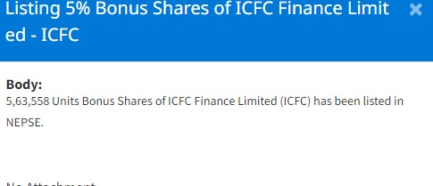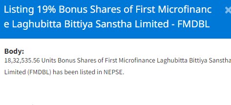 फस्र्ट माईक्रोफाइनान्सको १९ प्रतिशत र आइसीएफसी फाइनान्सको ५ प्रतिशत बोनस शेयर आज नेप्सेमा सूचीकृत भएको हो ।