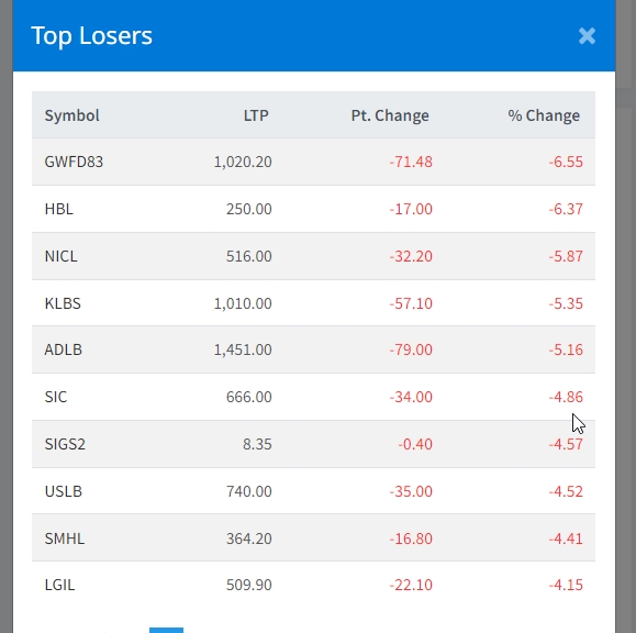 त्यस्तै, हिमालयन बैंक, नेपाल इन्स्योरेन्स, खप्तड लघुवित्त, आदर्श लघुवित्त लगायत अन्य कम्पनीहरुको शेयर मूल्य घटेको छ ।