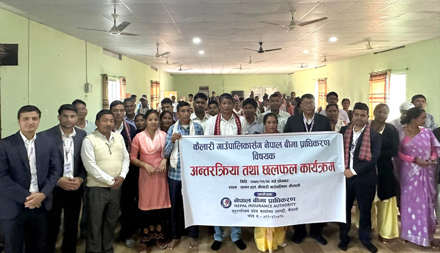 काठमाडौं । नेपाल बीमा प्राधिकरणले कैलाली जिल्लाको कैलारी गाँउपालिकामा बीमा सम्बन्धी जनचेतनामूलक अन्तरक्रिया कार्यक्रम सम्पन्न गरेको छ । प्राधिकरण सुदुर पश्चिम प्रदेश धनगढीबाट उक्त कार्यक्रम सम्पन्न भएको हो ।