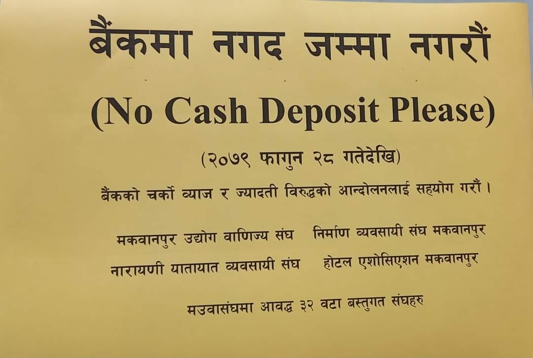 तथापि बैंकिङ क्षेत्र अत्यावश्यक सेवा प्रदायक सार्वजनिक निकाय भएकोले सुरक्षाकर्मीले बल प्रयोग गरेर बैंंक खोल्ने सम्भावना बलियो छ । आज दिनभरि नै धर्ना र विरोध जनाएका व्यवसायीहरुले भोलि बैंक नै बन्द गर्न लिखित पत्राचार गरेका हुन् । बैंकले ब्याजदर तत्काल घटाउनुपर्ने माग गर्दै सडक आन्दोलन गर्दै आएका उद्योगी व्यवसायीहरुको ३२ वटा संस्थाको नेतृत्व मकवानपुर जिल्ला बाणिज्य संघले गर्दै आएको छ । उक्त संघको आन्दोलनलाई उद्योग बाणिज्य महासंघकै समर्थन रहेको जनाइएको छ ।