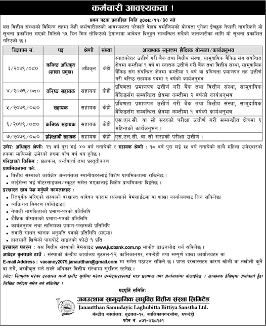 जनउत्थान सामुदायिक लघुवित्तद्धारा कर्मचारी माग, एसएलसी उत्तिर्णलाई समेत अबसर