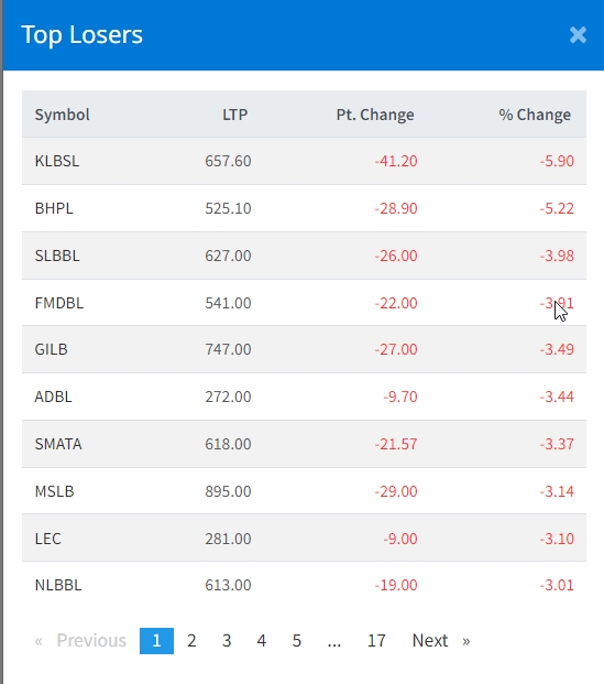 त्यस्तै, बाराहि हाइड्रोपावर, स्वरोजगार लघुवित्त, फस्ट माइक्रोफाइनान्स लघुवित्त, ग्लोलव आइएमई लघुवित्त लगायत अन्य कम्पनीको शेयर मूल्य घटेको छ ।