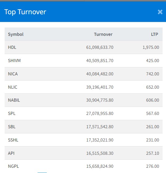 यी हुन् आइतबार सर्वाधिक कारोबार हुने टप १० कम्पनी
