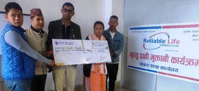 रिलायबल पोखरा शाखाले आयोजना गरेको उक्त कार्यक्रमको सहजीकरण शाखा प्रमुख सूर्य सुमन थापाले गर्नुभएको थियो । लाइफ इन्स्योरेन्सको बीमा इतिहासमा सबैभन्दा धेरै रकमको दाबी भुक्तानी गर्ने कम्पनीको रुपमा रिलायबल लाइफ इन्स्योरेन्स परिचित छ ।