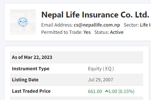 यसकारण पनि अन्य जीवन बीमा कम्पनीहरुको तुलनामा नेपाल लाइफ इन्स्योरेन्सको शेयरमूल्य बढी हुनुका साथै लगानीकर्ताहरुको रोजाइमा समेत पर्ने गर्दछ ।