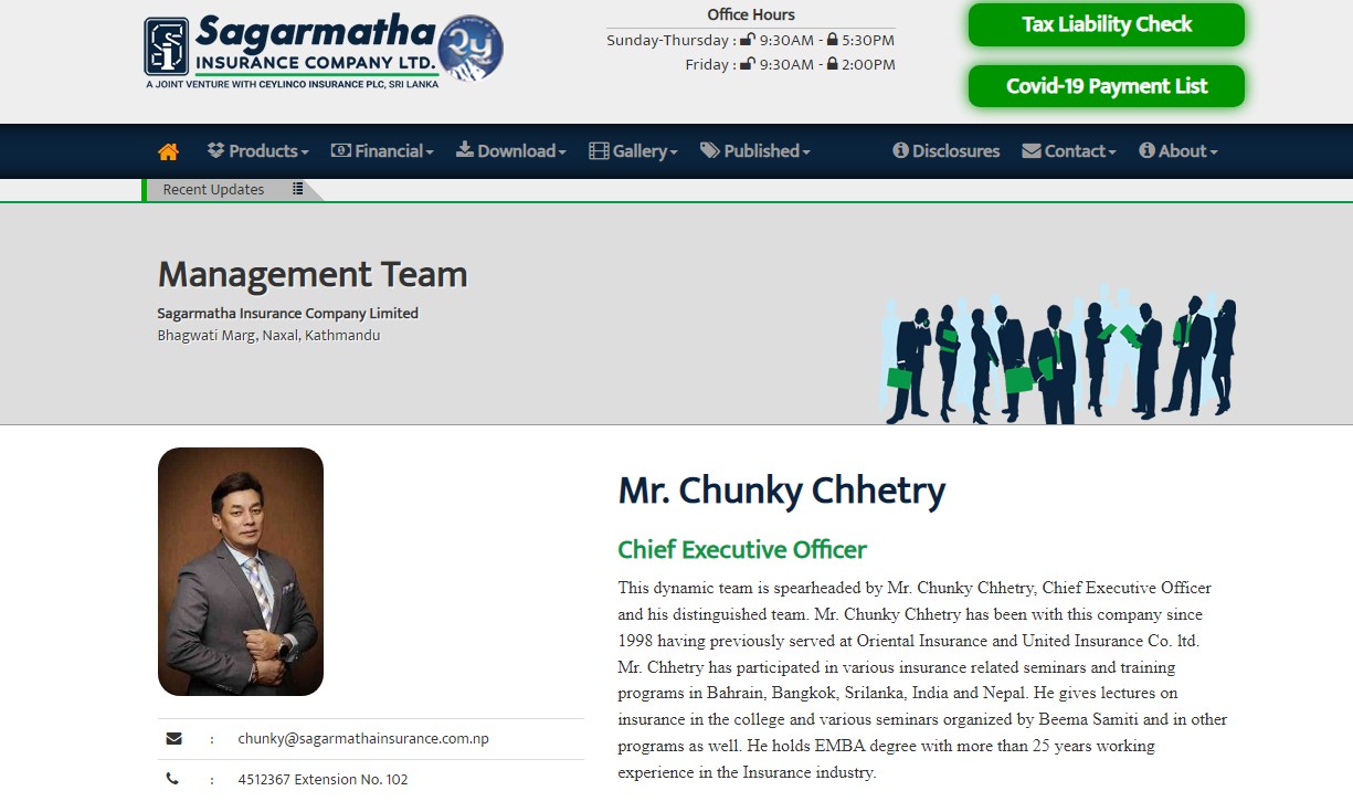 लामो समयसम्म सर्वसाधारणलाई आफनो नामभन्दा फरक पारी जागिर खाँदै आएका व्यक्ति अहिले पुनः सगरमाथा लुम्बिनी इन्स्योरेन्स कम्पनीमा सिईओ पदमा नियुक्तीको लागि अनुमति माग्न फाइल बीमाप प्राधिकरणमा पेश गरिएको छ । आफूलाई चंकी क्षेत्री भनेर चिनाउने गरेकोमा सगरमाथा इन्स्योरेन्स कम्पनीको सिइओको रुपमा वेभसाइटमा भने Chunky Chhetry भनेर उल्लेख गरेका छन् । जसको नेपाली सोझो अर्थ रोमनमा चुँकी क्षेत्री हुन आउँछ ।