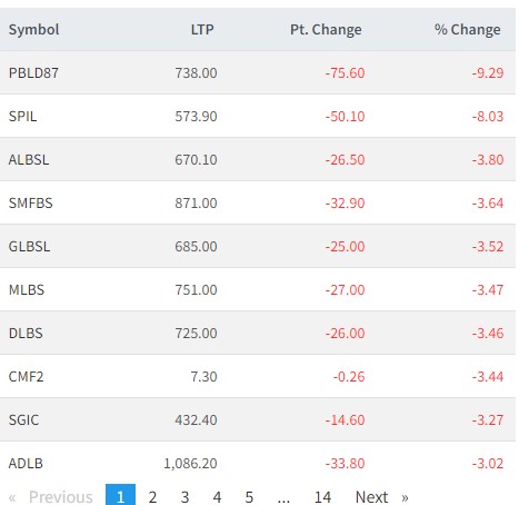त्यस्तै, सिद्धार्थ प्रिमियम, आशा लघुवित्त, स्वाभिमान लघुवित्त, गुराँस लघुवित्त, मानुषी लघुवित्त, धौलागीरी लघुवित्त, सिटिजन म्युचुअल फण्ड २, सानिमा जिआईसी र आर्दश लघुवित्तको शेयर ओरालोतर्फ लागेको छ ।
