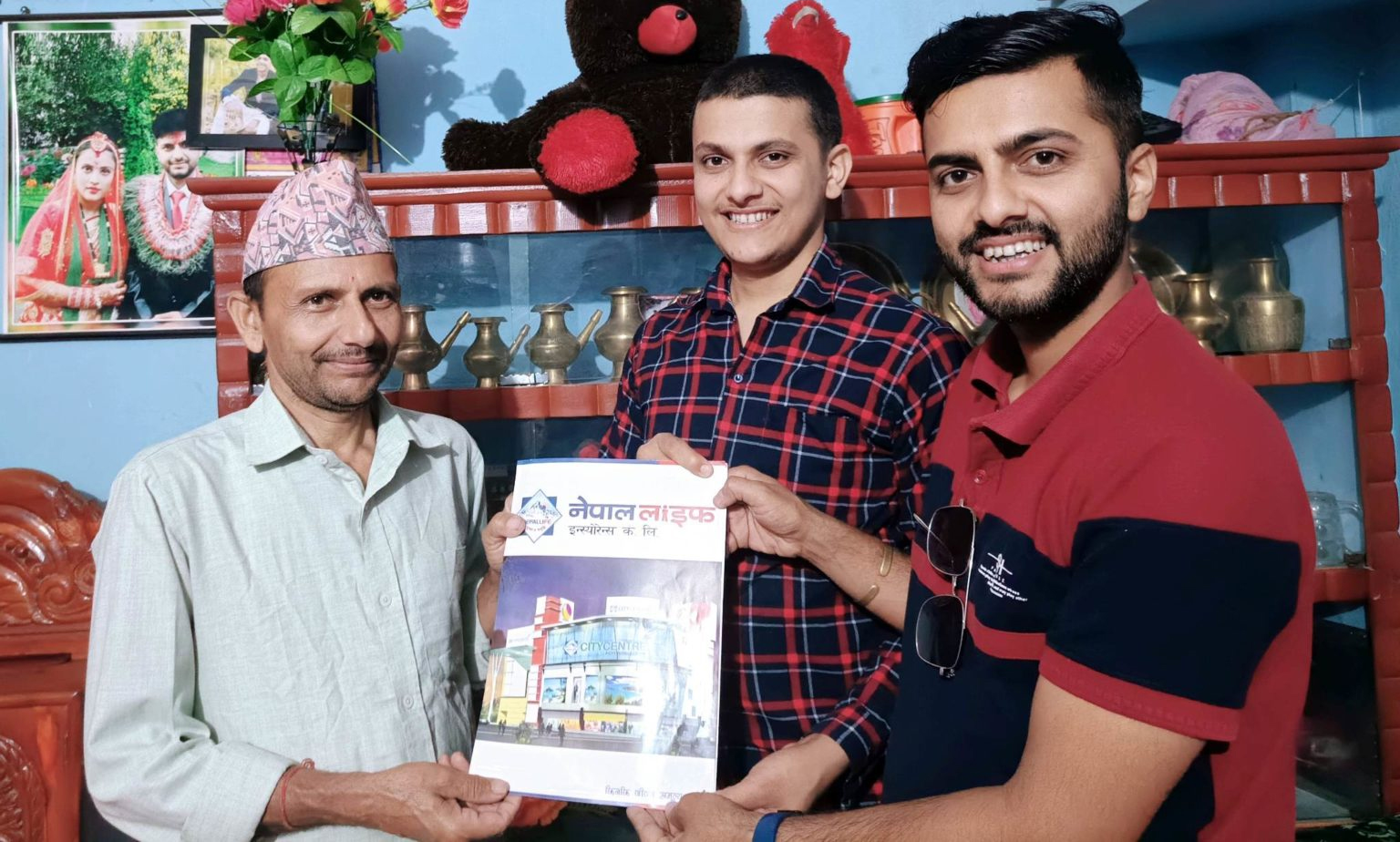 नेपाल लाइफका एजेन्सी म्यानेजरले दिए बुबाको जन्मदिनमा बीमा पोलिसी उपहार