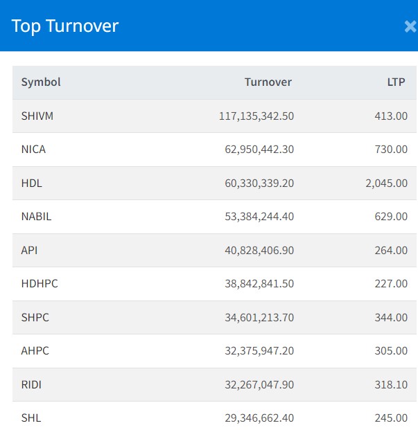 शेयरबजारमा उछाल आउदा यी हुन सर्वाधिक कारोबार हुने टप १० कम्पनी