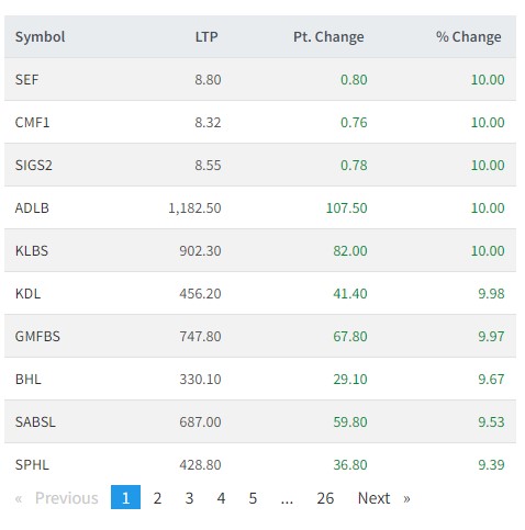 समृद्धि इक्विटी फण्ड, सिटिजन म्यचुअल फण्ड १, सिद्धार्थ इन्भेष्टमेन्ट ग्रोथ फण्ड, आदर्श लघुवित्त, खप्तड लघुवित्त, कालिन्चोक दर्शन, गणपति लघुवित्तको शेयरमा सकारात्मक सर्किट लागेको छ ।
