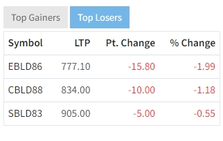 आज शेयर बजारमा उछाल आएतापनि नेप्सेमा सूचिकृत ३ कम्पनीहरुको शेयर मूल्य घटेको छ । आज एभरेष्ट बैंकको १।९९ प्रतिशत, सिभिल बैंकको डिभेन्चर २०८८ को १।१८ र एसबिएल डिभेन्चर २०८३ को ०।५५ प्रतिशतले शेयर मूल्य घटेको छ ।
