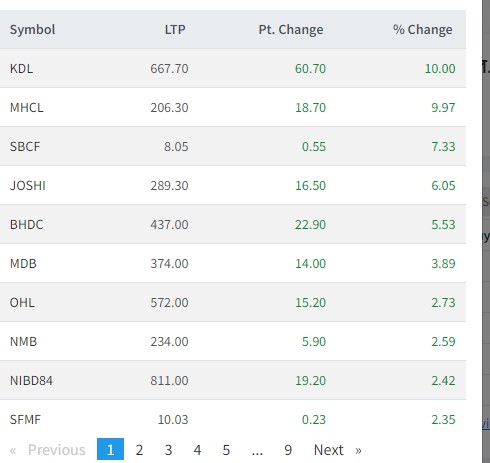 त्यस्तै, सनराईज ब्लु चिप, विन्धवासीनी हाईड्रोपावर, उन्नती सहकार्य लघुवित्त, मितेरी लघुवित्त, ओरियन्टल होटल, एनएमबि बैंक, सनराइज म्युचुल फण्डको शेयर उकालो लागेको छ ।