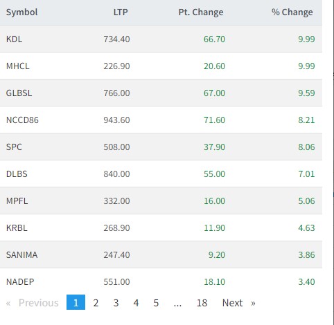 त्यस्तै,गुराँस लघुवित्त, एनसीसीको डिभेञ्चर८६, धैलागिरी लघुवित्त, मल्टीप्रपोज फाइनान्स, कर्णाली डेभलपमेन्ट बैंक, सानिमा बैंक र नाडेप लघुवित्तको शेयर उकालो लागेको छ।