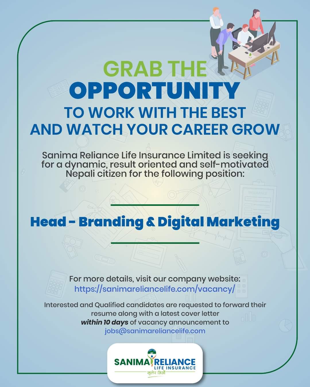 सानिमा रिलायन्स लाइफ इन्स्योरेन्सको रोजगारीमा आवेदन दिने आज अन्तिम दिन
