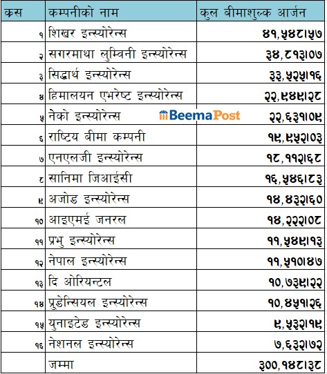 निर्जिवन बीमा कम्पनीहरुको बीमा व्यवसाय ३० अर्ब माथि, एकिकृत कारोबार गरेका कम्पनीहरु थप मजबुत बन्दै (तथ्यांक सहित)