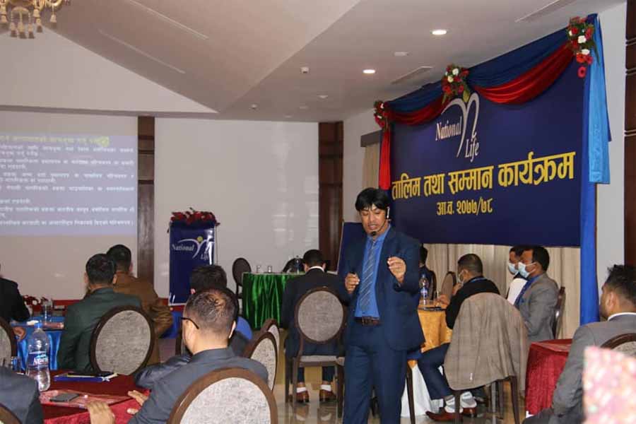 नेशनल लाइफमा रहँदा तालिम दिँदै तत्कालिन डेपुटी सिईओ श्रेष्ठ ।
