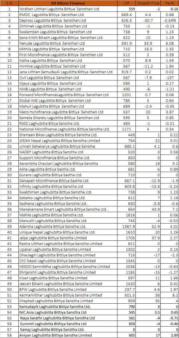 दोस्रो बजारमा गत साता कुन लघुवित्तको अवस्था कस्तो रह्यो ?