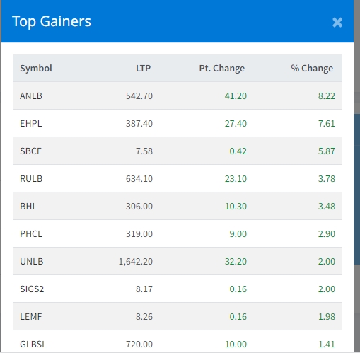 त्यस्तै, इष्टर्न हाइड्रोपावर, सनराइज ब्लुचिप, बलेफि हाइड्रोपावर, राष्ट्र उत्थान लघुवित्त लगायत अन्य कम्पनीहरुको शेयर मूल्य बढेको छ ।