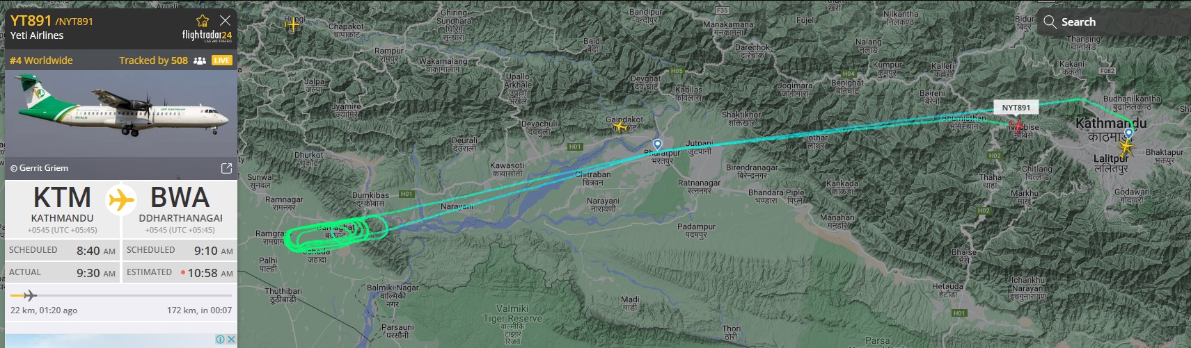 भैरहवाबाट ९ः४० बजेमात्रै काठमाडौंतर्फ उडेको जहाजमा करिब १० मिनेट नबित्दै इन्डिकेटरले समस्या देखाएको थियो । लगत्तै जहाज भैरहवा विमानस्थलमा आपतकालिन अवतरण गराइएको हो ।