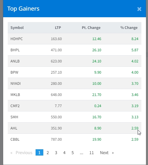 आज शेयर बजार घटेतापनि केहि कम्पनीहरुको शेयर मूल्य बढेको छ । आज हिमाल दोलखा हाइड्रोपावर, आत्मनिर्भर लघुवित्त, विपिड्ब्लु लघुवित्त, न्यादि हाइड्रो लगायतका कम्पनीहरुको शेयर मूल्य बढेको छ ।