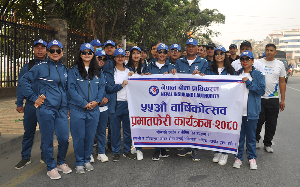 बीमा प्राधिकरणको ५५ औं बार्षिकोत्सवको अवसरमा प्रभातफेरी सम्पन्न, सामूहिक रुपमा बीमा जागरण अभियान चलाऔंः अध्यक्ष सिलवाल