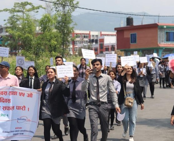 ५५औं बीमा दिवसको सन्दर्भमा आज पोखरा विश्वविद्यालय केन्द्रिय क्याम्पस, पो म.पा. ३० ढुंगेपाटनबाट स्कूल अफ बिजनेसमा बिबिए बिआई कार्यक्रममा अध्ययनरत विद्यार्थीहरुको आयोजनामा बिबिए अध्ययनरत विद्यार्थीहरुको समेत सहभागितामा करिब ३०० जना बिद्यार्थी सहितको र्याली शुरु गरिएको थियो ।