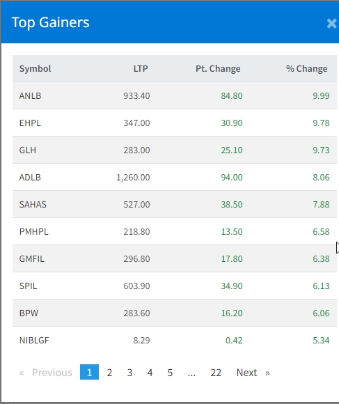 आज शेयर बजार दोहोरो अंकले बढेसँगै आत्मनिर्भर लघुवित्तको शेयर मूल्यमा सर्किट लागेको छ । त्यस्तै, आज ग्रिन लाइफ हाइड्रोपावर, आदर्श लघुवित्त, इष्टर्न हाइड्रोपावर, साहस उर्जा लिमिटेड लगायतका अन्य कम्पनीहरुको शेयर मूल्य बढेको छ ।