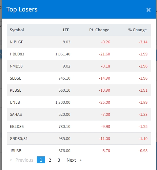 आज शेयर बजारमा हरियाली छाएतापनि केहि कम्पनीको शेयर मूल्य घटेको छ । आज एनआइबिएल ग्रोथ फण्ड, हिमालयन बैंक डिभेन्चर २०८३, एनएमबि ५०, सामुदायिक लघुवित्त, किसान लघुवित्त लगायत अन्य कम्पनीहरुको शेयर मूल्य घटेको छ ।