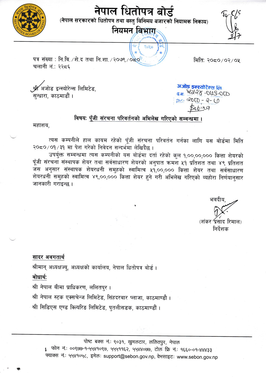 अजोड इन्स्योरेन्सको शेयर संरचना परितर्वन