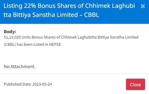 छिमेक लघुवित्तको २२ प्रतिशत दरका कुल ५१ लाख १३ हजार २० कित्ता र युनाइटेड मोदी हाइड्रोपावरको ८ लाख ५ हजार कित्ता बोनश शेयर नेप्सेमा सूचिकृत भएको हो ।