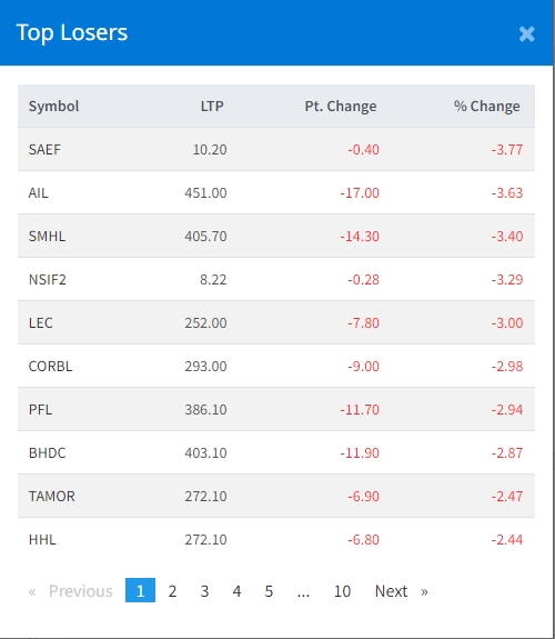 आज शेयर बजार सामान्य अंकले बढेतापनि केहि कम्पनीहरुको शेयर मूल्य घटेको छ । आज सानिमा इक्विटी फण्ड, अजोड इन्स्योरेन्स, सुपरमादी हाइड्रोपावर लगायतका कम्पनीहरुको शेयर मूल्य घटेको छ ।
