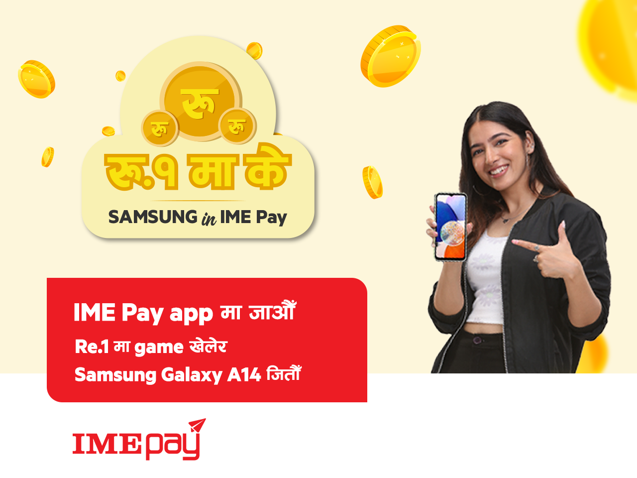 जेठ १० गतेदेखि जेठ १७ गतेसम्म चल्ने यस अफरमा आइएमई पेका सम्पूर्ण प्रयोगकर्ताले केवल रु. १ मा सो खेल खेली सामसुङको ग्यालेक्सी ए–१४ ५जी स्मार्टफोन जित्ने मौका पाउन सक्नेछन् ।