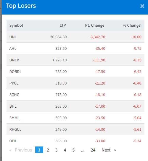 शेयर बजारमा उच्च अंकले गिरावट आएसँगै युनिलिभर नेपाल लिमिटेडको शेयरमा नकरात्मक सर्किट लागेको छ । त्यस्तै, आज एशियन हाइड्रोपावर, युनिक्यु नेपाल लघुवित्त, दोर्दी खोला जल विद्युत कम्पनी, पाँचथर पावर कम्पनी लगायतका कम्पनीको शेयरमूल्य घटेको छ ।
