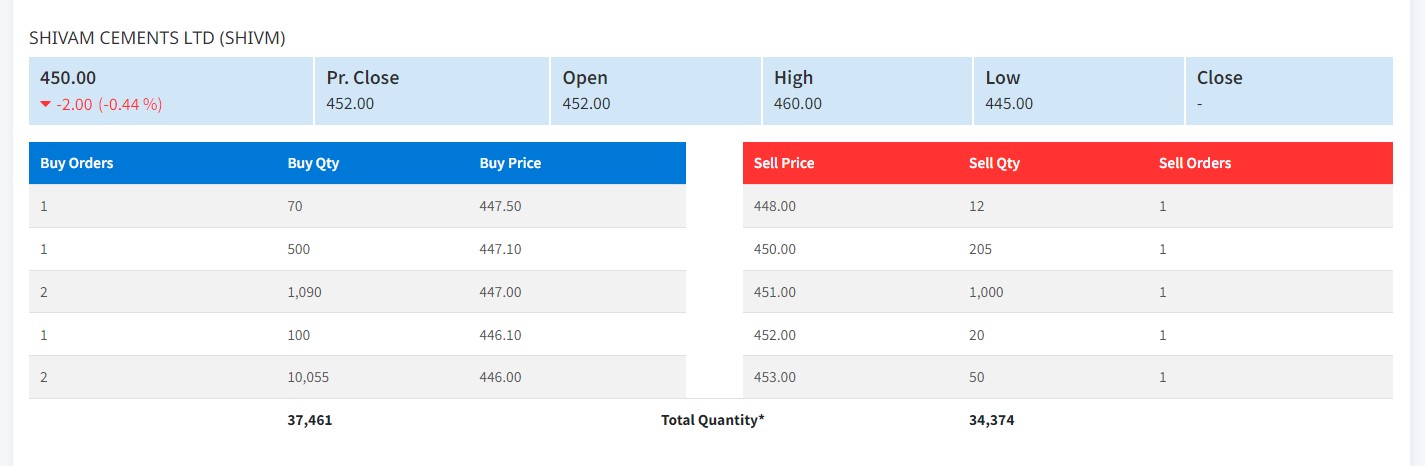उता, दोस्रो बजारमा शिवम् सिमेन्टको शेयर मूल्य लगातार घटिरहेको छ । हिजो ४६२ बाट ४४७ रुपैयाँसम्ममा झरेको शेयर कारोबार बन्द हुँदा ४५२ रुपैयाँमा पुगेको थियो । आज पनि ४४६ रुपैयाँमा झरिसकेको शिवम्को शेयर तल घट्न नदिन सेटिङमा ४४६ रुपैयाँमा १० कित्ता बिक्रीमा राखेर ब्याक सपोर्ट राखेको देखिएको छ । करोडौं रुपैयाँ नोक्सानीमा परेपछि घटेको शेयर मूल्य धेरै तल जान नदिन केही समुहले सेटिङमा शेयर खरिद बिक्री गरिरहेको अनुमान गरिएको छ । गत मंगलबार १६ करोड रुपैयाँको शेयर कारोबार भएकोमा हिजो ११ करोडको शेयर बिक्री भएको थियो ।